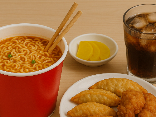 포화지방+트랜스지방의 악순환으로 혈관에 치명적이에요. 특히 컵라면과 치킨 조합은 '지방 폭탄'입니다.